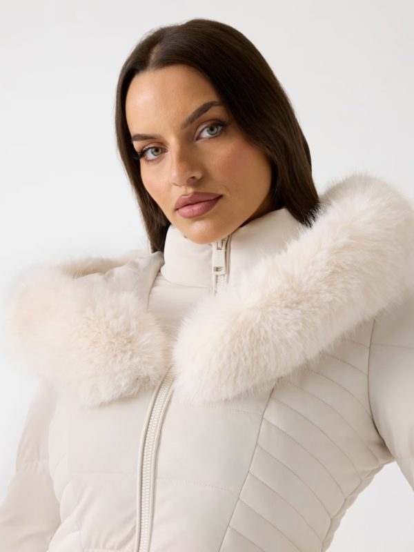¡Este GUESS PLUMIFERO CON CAPUCHA DE PELO BEIGE puede ser tuyo por solo 240,00€!